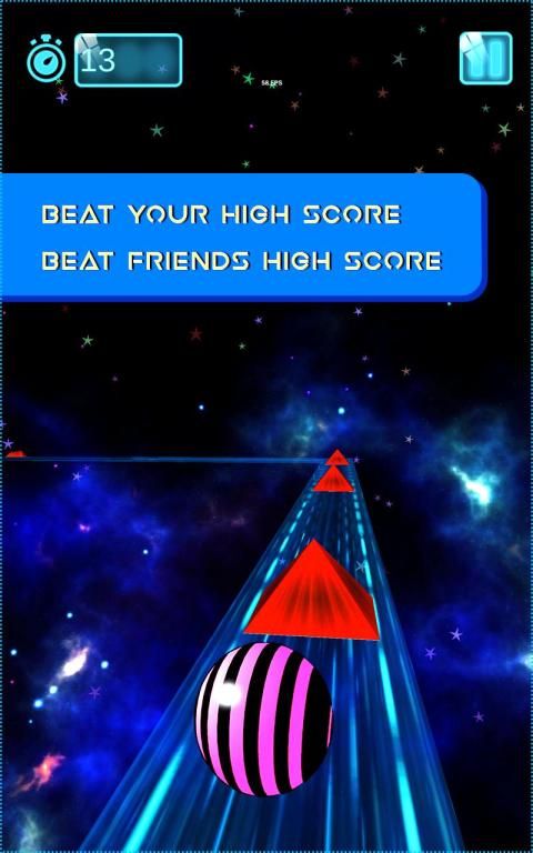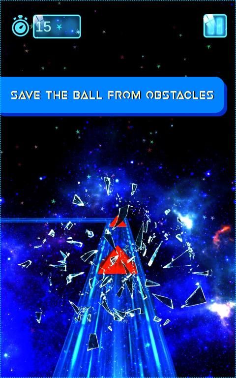 In rolling space ball game, initially tap the screen to get the ball moving. Whenever you come across an obstacle, tap the screen to jump.