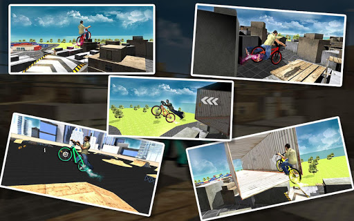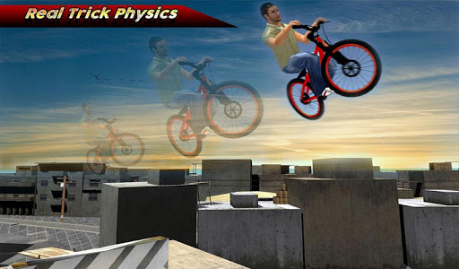 Showoff professional cycling skills in this exciting outdoor sports bicycle game. Get ready for boosting huge jumps, crazy Christ and extreme mountain bike stunts but beware of epic crashes otherwise you will lose building rooftop tricycle mission. Become daredevil cyclist by performing flip in furious bike stunt race. Throttle mountain bike to earn skilled cyclist points at every insane jump on big ramps, half pipes and mad tracks. Just race against your friends and show them who is the best stuntman bicycle rider 2017. Follow cycling direction arrows and ride mountain bike to perform trick combos action like never before. Just maintain your BMX speed to carefully clear all challenging levels in Rooftop Stunt Man Bike Rider. Each level has more thrill than the previous one so gear up your furious bicycle to perform big jumps and drops on giant ramps. Gain points to refill your health bar on longest stunt challenges. Just be on wheels, control your vehicle and reach the finish of every mad tracks. Your happy time is about to start from here!