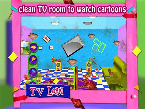Bedroom needs your great attention as clothes, dresses and toys are scattered here. Hang all dresses in the cabinet and collect toys. Repair walls of room and arrange your bed. Set pillows and blanket properly on the bed and keep the dressing table clean. And you did it, well done.
