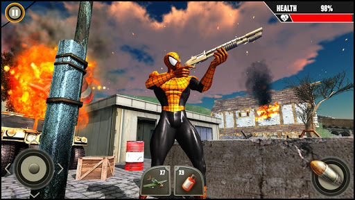 Amazing super rope hero is here to rescue the civil citizens and get the nation out of this warfare against the Monsters & beasts war lords. Enemies have spread free fire shooting all around the country. As the real super rope hero, you have to use your jumping, kicking and boxing skills all of these war monster in the battlefield. Equip your self with best fire power of battlefield. Careful in the use of sniper rifles and other heavy weapons like gunner because it can effect the civilians in this Futuristic Free Fire shooting Game. Use your Amazing super Rope Hero skills to move rapidly in the city against the enemies. Timing is important to use your superhero skills in the right time. Remember, your rope hero champions skills and give no space in the battleground to the criminals. Battle arena is full of spider to deadliest strange captain heroes.