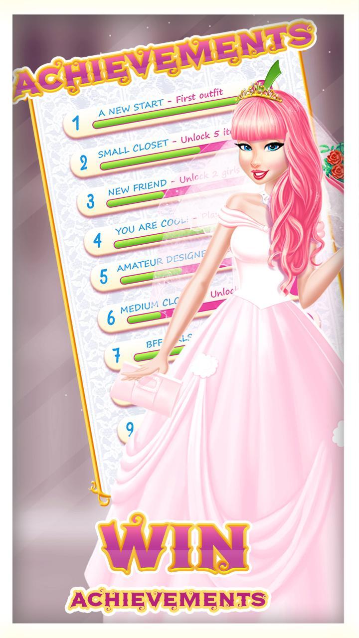 Keep testing your skills with all the model you'll have to deal. Now you are going to choose the wedding dress up where you have to take care of the outfit from the ground. Begin with the hairstyle and continue with a beautiful dress that will match the chosen accessories you’ve got. Sparkling jewelry, immaculate dress, fantastic shoes, glowing veil and a remarkable tiara are the elements that characterized the look you are going to offer. Try all the possible combination to complete the achievements panel and to finish the given tasks. Become a real fashion designer for weddings and practice your abilities in creating stunning looks with this princess game. Don't forget to choose a special kind of theme because the girls have royal blood and that make your mission a little bit harder.