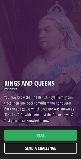 Be the most knowledgeable of your friends when it comes to British Royal history! Do you know which ancestor was known as “King Log”, or what King Henry VIII’s favourite sport was? Would you know how to dress to impress at the palace, or not embarrass yourself at court? If so, challenge your friends to play the game, or let your friends challenge you, and claim your title as king of the Royal History Quiz App! Your competitors do not need the app to play, so set up the battle and prove you’re the best at recounting important historical facts and events in English Royal history.