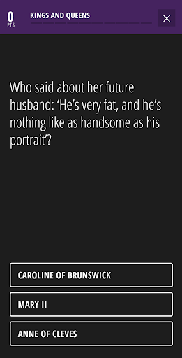 Test and expand your knowledge of British Royal History with the Royal History Quiz App. Discover more about the ancient, world-famous fortress - The Tower of London, or The Tudors, one of the most famous, fascinating dynasties in English History. Take a journey into Palace Life and learn about the royal manners and behaviours, or the Kings and Queens of generations gone by. Through a range of multiple choice, true or false, and image selection question types, broaden your knowledge and earn points as you travel back in history with this fun and informative Quiz App.
