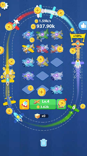 Royal Plane is an app in which each plane flies around a closed ring. You need to merge and manage aircrafts to upgrade your level.