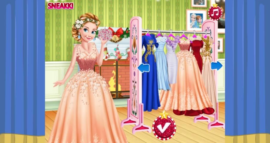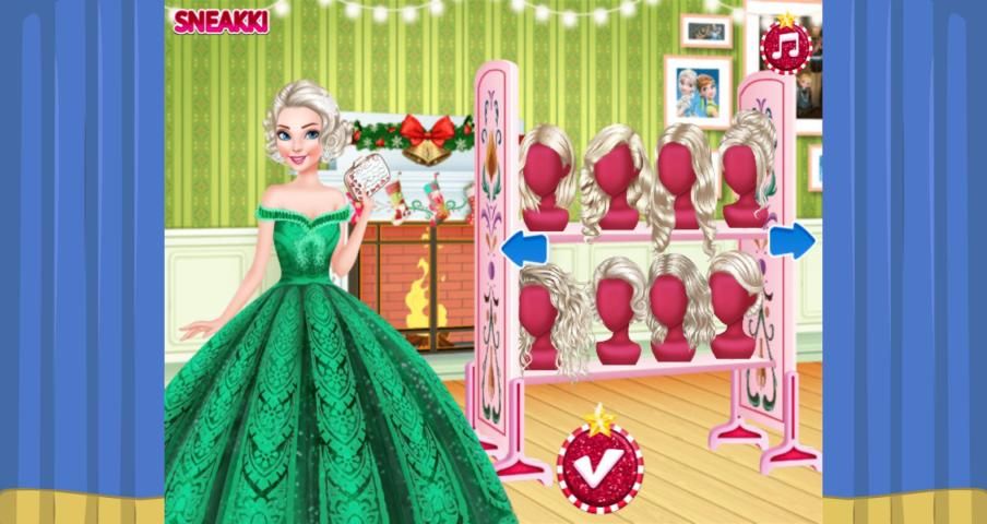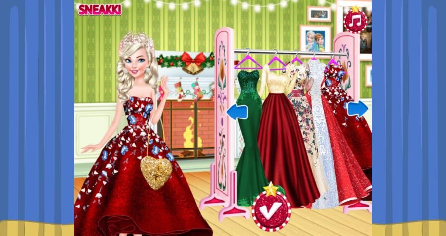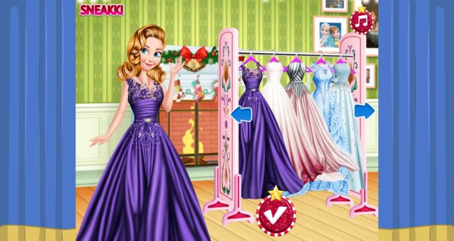 It is going to be very glamorous, help them both get dressed up for this occasion. For first girl, you can pick a lovely dress with a golden blouse and a red silk skirt or a strapless red princess style gown with flower prints, a long grey cape with white embroidery, style her hair with some retro curls and accessorize with a small precious clutch and crystal earrings. For another girl pick a blue gown with golden embroidery or a lavender dress with a full flower collar. Accessorize her look with a pearl handbag, a flower tiara and an elegant bun. Then you can help them decorate the Christmas tree and the room for the ball using lights, colorful globes and big snowflakes. Have an incredible time playing this game!