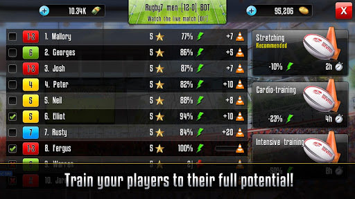 You'll need to hire the best players, train them and gear them up in order to reveal their full potential. Indeed, Rugby Sevens Manager is focused on micro management and you'll need to discover each player's strengths to make the best of your team.