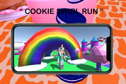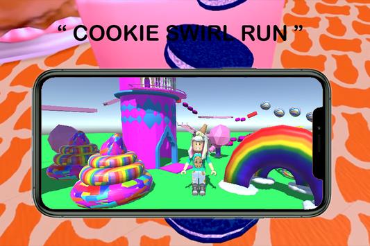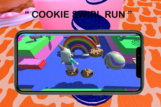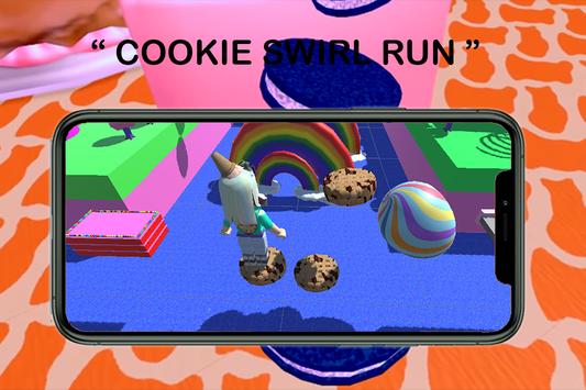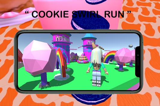 Cookie the roblox swirl adventures game is easy to play you just have to run and jump as many as you can by avoiding obstacles and collect cookies on your way.
