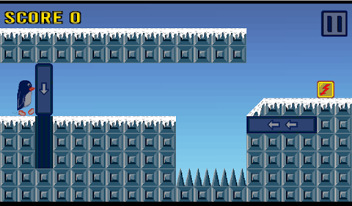 is a penguin run game with pixel art graphics. Race penguin 🐧 with unique play mechanics. Let Frost Penguin run, slide the barriers and trapdoors in his way. The main character, Frost Penguin 🐧, is running automatically and the player does not control the penguin directly. To avoid the running peguin Frost to hit the spikes or another obstacles, drag and slide the barriers, platforms and trapdoors away. Slide the trapdoors and save Frost Penguin.