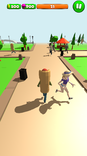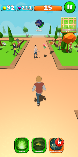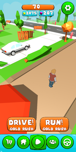 It looks like innocent running in the park, but actually it can be very challenging, run through people, dogs, cats, animals and obstacles like benches, trees, bushes and many other! Collect coins and gems to rebuild and build your house and buy cars! Yes, cars! You can drive on streets to collect more coins and gems, but remember to fuel car up!