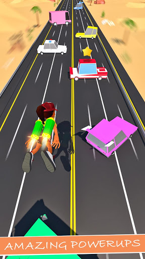 Upgrade your Rush Hour Character with more speed to be able to travel faster than before and beat your high score. The longer you travel the more money you get. Simple and addictive gameplay that will have you flying like an eagle and will jump like a crazy man over the vehicles. Many upgrades to keep you travelling by watching a video or spending some coins. This Traffic Run & car Jump game is the most challenging, endless game.