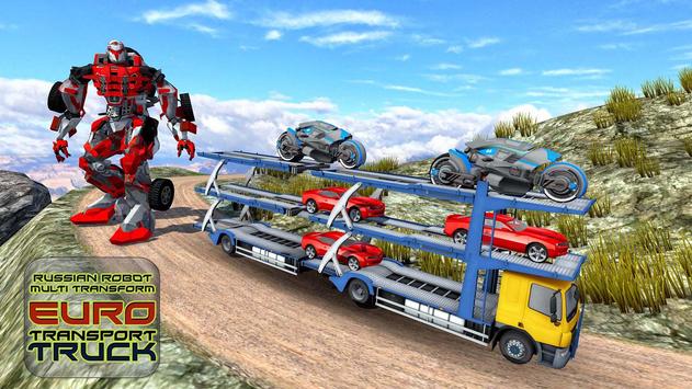 The game features multiple challenging robot transformation and robot transport truck driving simulation challenges. The robot cargo needs to be delivered to its new location quickly. You need to transform into a robot bike or robot car and reach the cargo loading point. Once all robot cargo is loaded onto the real euro transport truck driving simulator, the real challenge of driving through dangerous uphill extreme tracks begins and time is very important. You will have to become an expert robot car driver, robot bike driver and real euro transport truck driver to become the champion of this robot multi transform real euro transport truck driving simulator game.