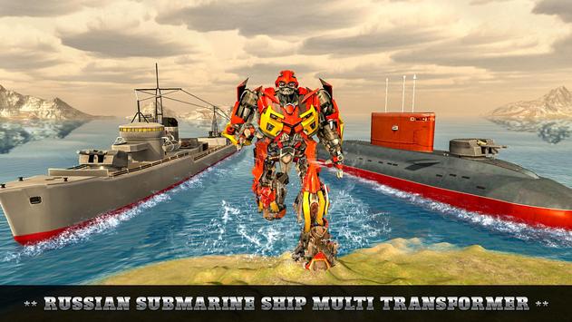 In this russian submarine robot transformation game, become warship robot or iron robot possessing robot car transform skills has to defeat enemy robot submarines from robot navy including real robot or instant killer robot superhero with their supreme leader flying robot having car transform robot hero or mech warrior weapons which are initiating robot wars or destructive epic war in crime city along futuristic city. Russian Submarine WW2 Multi Robot Transformation has to battle using battle cruisers in destructive ww2 ship battle or deadly naval warfare skills for performing city rescue duty as war robot or mech warrior along with superhero robot with exceptional warship robot or robot battleship skill or realistic flying robot car or warship robot transform abilities with submarine simulator or realistic battle simulator in robot battle arena.