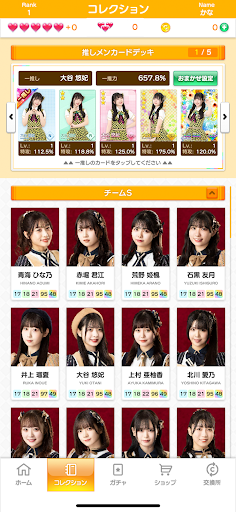 Select your favorite idol, and as you play, that idol's card will level up! When closeness rises, application limited "secret voice" is released.