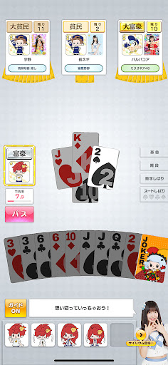 You can play "President" in single-player CPU battles, or online with other players, including actual idols from SKE48! You will see the idols appear via a special animation, and play against them in real time.