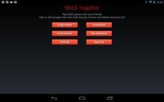 **NOTE**: This app is currently in beta, giving negative feedback on the play store helps no one. Please report bugs instead SNES Together is a custom SNES emulator that has fantastic netplay code, built on top of the awesome Google Play Games Services. Play SNES games with your friends! INSTRUCTIONS: 1) Buy some authentic SNES cartridges. 2) Download ROMs for these cartridges onto your device (phone or tablet), or put ROMs on a Dropbox account and use the Dropbox icon. 3) Start the SNES Together app and sign into Google Games Services. 4) Pick one of the game modes (Invite friends or Auto Match). 5) Choose a ROM file from your device's storage (.smc & .zip files supported). 5) Play and have fun! LEGAL: Nintendo game software sold separately. SNES Together emulator (“SNES Together”) users must obtain self-created and privately used backup copies of rightfully owned physical video game cartridges for use with the SNES Together. Any such copies used with the SNES Together must comply with permitted personal copies made in accordance with 17 U.S.C. § 117(a)(1). Any video game software copies made for use with or by the SNES Together shall not be distributed to others, online or otherwise. This product is not affiliated with, nor authorized, endorsed or licensed in any way by Nintendo Company, Ltd., its affiliates or subsidiaries. “Nintendo” is a registered trademark of Nintendo of America, Inc. Any and all video game software screen shots and related images that are simulated by the SNES Together and available on this SNES Together Google Play listing, the SNES Together website (versusnes.wikia.com), SNES Together software user interface or any SNES Together promotional material (collectively “Emulated Content”) is property of their respective copyright owners. Jason Gauci’ use of any Emulated Content is only for the purpose of providing comparative advertising to inform customers of the SNES Together’ abilities and functionality in a truthful and non-deceptive manner.