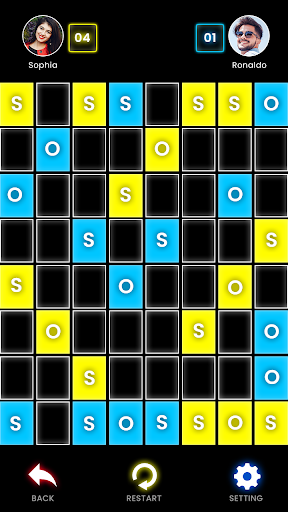 Before play begins, a square grid of at least 3x3 squares in size is drawn. Players take turns to add either an "S" or an "O" to any square, with no requirement to use the same letter each turn. The object of the game is for each player to attempt to create the straight sequence S-O-S among connected squares (either diagonally, horizontally, or vertically), and to create as many such sequences as they can. If a player succeeds in creating an SOS, that player immediately takes another turn, and continues to do so until no SOS can be created on their turn. Otherwise turns alternate between players after each move.