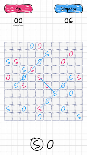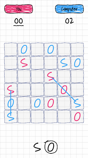 SOS is a classic pen and paper game where object is to make highest S-O-S sequences. SOS sequences can be made from top to bottom, left to right or diagonally. If you make SOS, it will be your turn again. Your aim here is not to give your opponent the opportunity to make SOS while you are trying to make more SOS sequences.