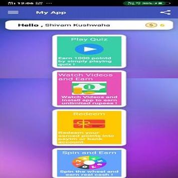 The app is spin and earn based application with Watch and Earn Real cash app system