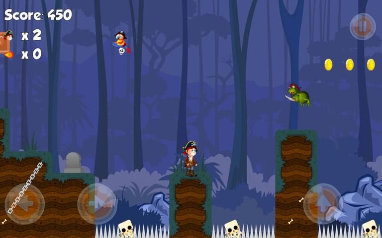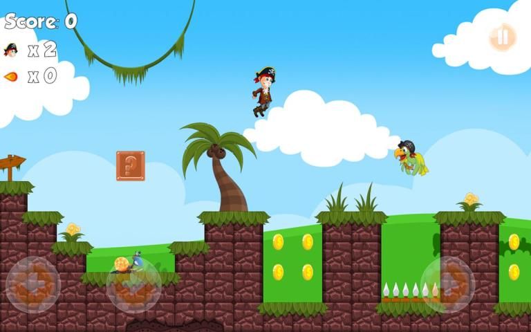 Super pirates World have to explore through eight worlds(Jungle world, Grassland world, Desert world, piramid world, Ice world, Volcanic world), survive from countless traps and enemies, collect coins, defeat crocodile, spider and frog. This game is one of adventure games that tells his super quest, which is a fantastic 2d side-scrolling platform game with the best sense of control and well-designed levels like star the bomb. You will face many cool obstacles like in super adventures that makes this adventure games really good for kid games too.