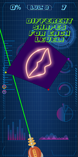 Cut the corners of squares with a laser, try to cut off as much surface area as you can! Breeze through a variety of levels with different shapes and sizes. Some more challenging than others, addicting!
