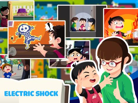 Safety for Kids is proud to present 12 safety game for kid including safety tips in case of stranger come, getting lost, robber invasion, fire escape, electric shock, earth quake, tsunami, lift trouble, first aid procedure … that illustrates how you and your children should react when those emergency situations hits. It’s IMPORTANT for children to know what to do in such cases.