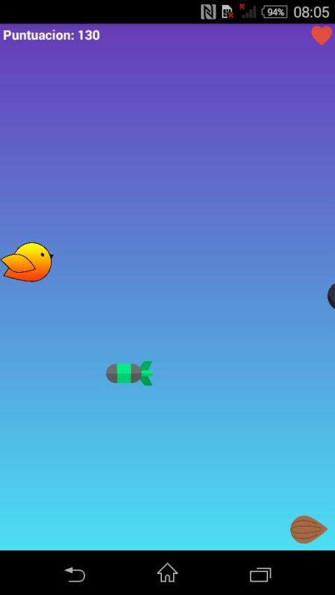 Trata de llegar a lo mas lejos evita las bombas, come las semillas y gusanos para ganar mas puntos, mantener precionado la pantalla para asender.