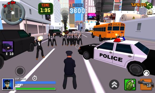 In this 3D action shooter you experience the anger you can have as a cop when somebody steals your donuts. So have fun and enjoy this newest 3D action shooter game. Enjoy the big 3D city that you can totally destroy from front to end.