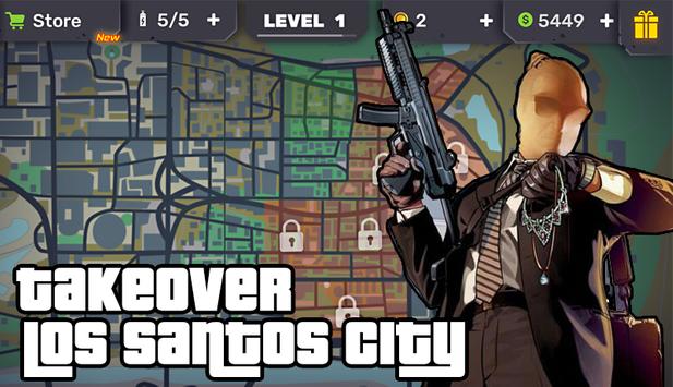 Welcome to the San Andreas Gangster Crime City. This Gangster city brings you a real street of Los Santos. Exciting car thief auto and gangster simulator, Rich 3D graphics and special effects. Play as gangster or police undercover in mafia, advance San Andreas city.