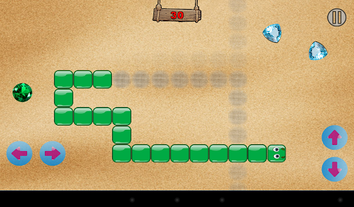 As you collect stones the snake grows by one square, but also it gets a little bit faster. The goal is to achieve the highest score possible.