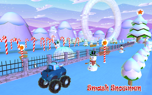 Enjoy ride of Real Snowman Monster Car and train around the fun off-road environment.