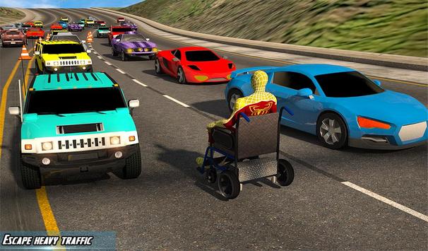 Your legendary fighters black hero panther, dual sword hero & flying spider are exposed to anti mutant dose of aliens which made them paralyzed. Evil aliens and supervillains have a plan to get control over grand city by manipulating supermutant heroes.The incredible hunk was helping them on wild wheelchair riding for city survival. But the aggressive violent powers of Green hero missed its control over motorized chair. Now, it's your survival duty to help Universe defenders in emergency rescue mission of heroes survival. Save injured hero by controlling their wild wheel chair against traffic load. Be a road hopper while performing freestyle action stunt as your supermutant heroes life is in danger and they need your help in savage traffic.