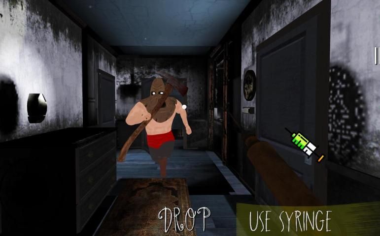 You have to open the door and get out of the horrible house. You can hide in a coffin. You can also hide in car trunks, cabinets and beds. If you want to stop the executioner, you have to inject him with the syringe.