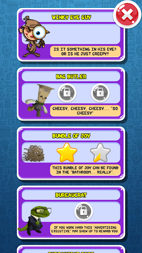 Who doesn't like cute, collectible creatures? In Scavenger Quest, you'll come across many interesting characters to collect. Bag Butlers, Emotional Bears, Bureaucrats, CraftyBots... You can earn them all and show them off to your friends.