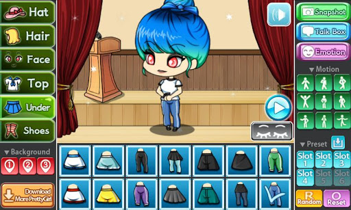 You can create your own Pretty Girl comics by using various emotion display and dialogue,
