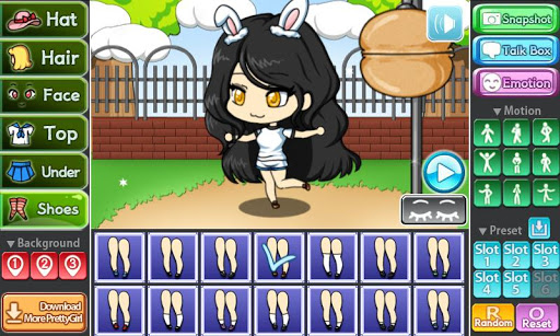 You can change the background, 9 poses and motions, you can also store your Pretty Girl in 6 slots.
