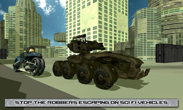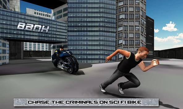3D simulation features of Sci-Fi Police Bike Crime Chase in this riding adventure: