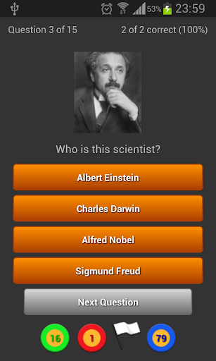 When you start the game you receive a question and have to choose the correct answer from different choices.