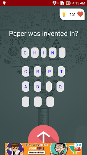 In Science Technology Hard Quiz there is no multiple option to choose there is shuffled characters to answer them.