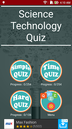 Using this Science Technology Quiz game learn, spend some free time with it, have fun playing it. It has 3 types which is simple quiz, time quiz and hard quiz.