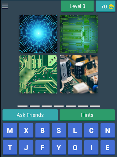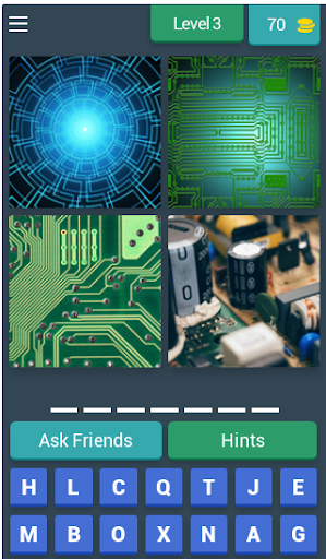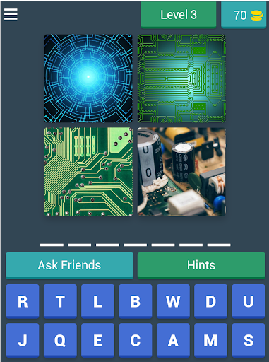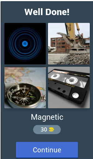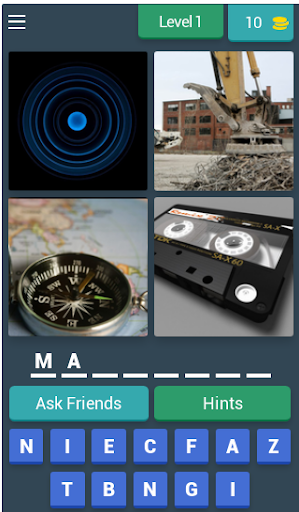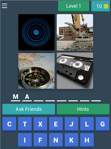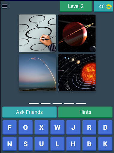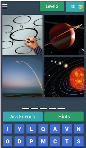 Player has to discover the correct answer by looking provided four pictures and type it correctly on given space. On each level, the difficulty will increase gradually.