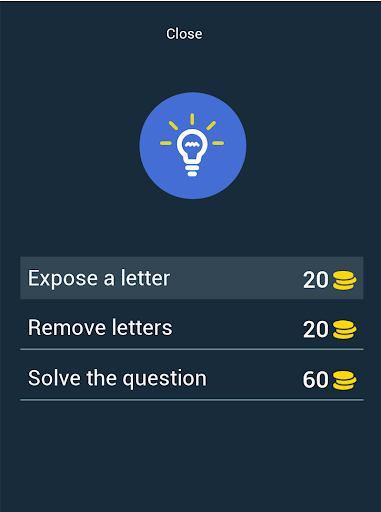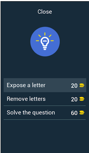 The player can Use a hint or Ask from friends the correct answer if he stuck in a particular level.