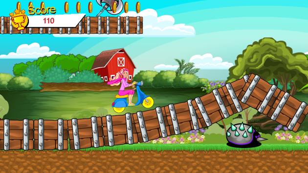 Miss princess rides and drives scooter bike. Lovely princess runs and collects all coins. Collect all coins and don't bump obstacle to make best score.In princess ride, cool scooter game in play store you will ride your sweet princess on her scooter bike. Collect bonus items for your princess . Collect the gems to score points on your way. Be careful on your ride, you have three chances to survive. You can watch your remaining lives on the bottom bar. Go through five different levels to finish the game, you can see the levels in the main menu of the game. This game is a girls scooter game for princess lovers. Use screen tap to ride the bike and to balance it. Good luck!