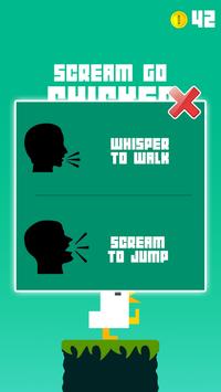 Scream to jump, whisper or talk to move and walk. scream go chicken game is very popular sound control game. It's free to play. Just make sounds. You can blow, whisper, talk, sing, shout, or even scream it go all out to the note eight and play this chicken scream go game. Every time you make noisy sounds, the hero will jump up & down hero chicken. Don't disturb your friends :) Don't stop playing your chicken scream go game.