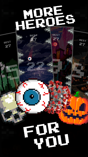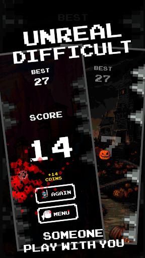 The game has a huge variety of horror and scary content. In your hands more than 8 screamers, 4 heroes and 10 unique scary and creepy moments. For jumping in this game you will earn coins. Having collected enough coins, you can open a new hero and the background, which is attached to it. Also in this horror, the presence of a pleasant soundtrack pleases, the menu plays cute 8-bit music to the motive of some kind of Halloween or horror game. During the gameplay in the background, we can hear the roar of a terrible wind, such sounds do not distract from the game and betray more horror and creepy effect as in scary films. We also added a lot of cool and funny achievements to our screamer game.