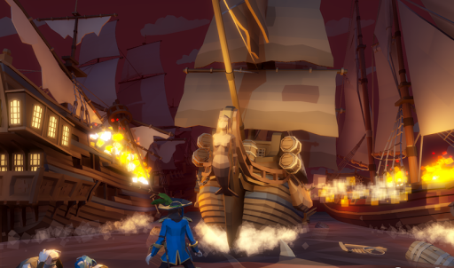 Thieves players explores the sea in an open world through a pirate ship and assumes different roles, such as the direction, the raising of sails, the navigation and the firing of cannons.