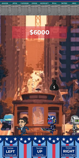 The Fourth Industrial Revolution is upon us! Join Andrew Yang on his quest to secure the Freedom Dividend by collecting $1000 bags from tech companies while dodging killer robots and trash bags! Unlock unique Andrew Yang skins and locations from across America.