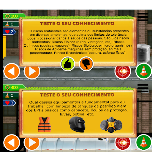 Game de Segurança do Trabalho com QUIZ, testes de conhecimento e aventuras. Um game lúdico que capacita e diverte os jogadores com painéis de perguntas e respostas, jogos dos 7 erros, além de proporcionar uma aventura muito divertida com os desafios de cada fase.