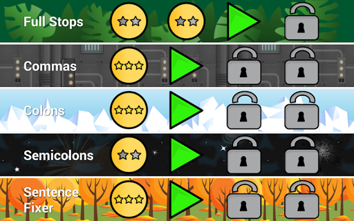 Work your way through game levels for full stops, commas, colons, semicolons and sentences. Position the missing punctuation marks and words in the right places to reach the source of energy. The faster you give a correct answer, the bigger your energy boost will be. Score a three-star energy rating on every level and achieve Sentence Hero status!
