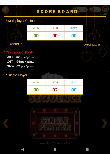 A Sequence board contains 100 cards. Maximum 3 players and minimum 2 players can play either online or offline. Also, single player can play against BOT in single player mode.