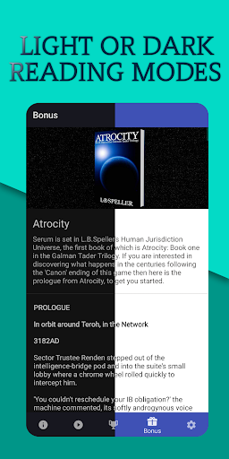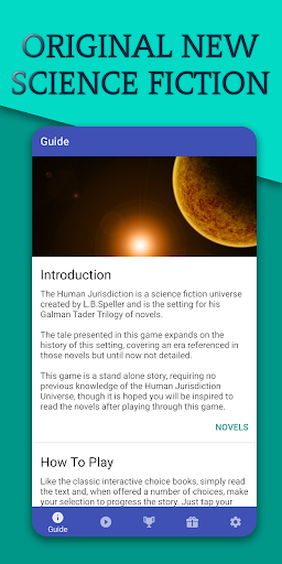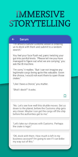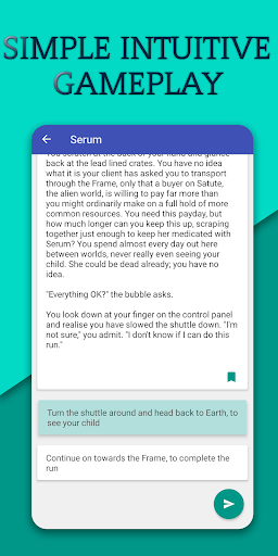 Enjoy an epic science fiction tale by award winning author L.B.Speller. Unlike some role-playing game-books and interactive novels, Serum has no complicated systems and plays much like the classic Chose Your Own Adventure (CYOA) game books. It has no ads and is 100% free. This role-playing scifi text adventure focuses purely on telling an exciting and original story, immersing the player in a unique sci-fi setting, pausing only to offer exciting and challenging choices which lead to dramatically different outcomes.
